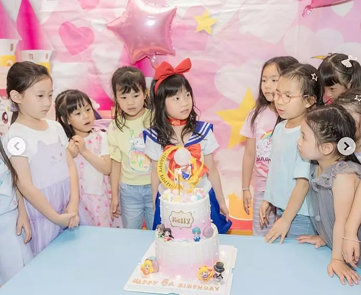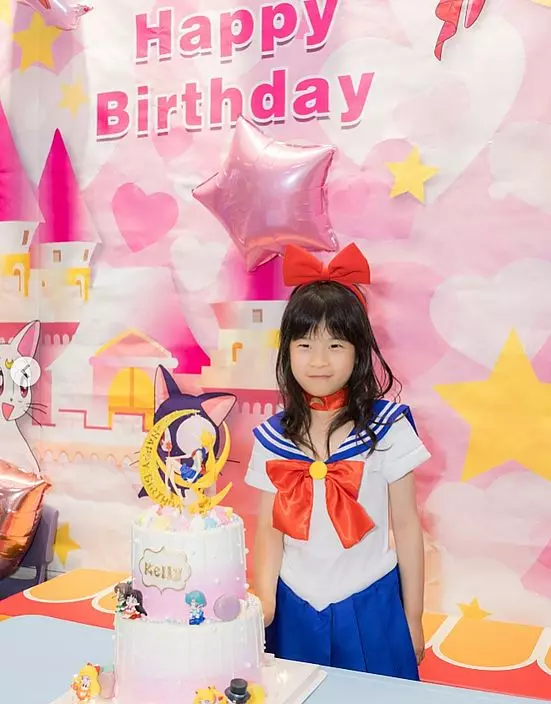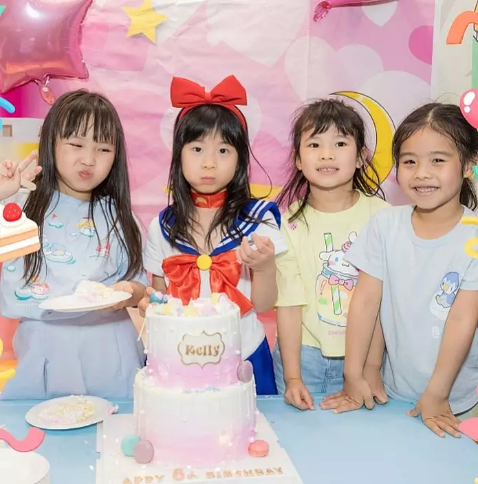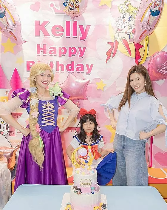 張美妮女兒Kelly早前迎來6歲生日,慶生派對以她最愛的「美少女戰士」為主題。派對上更請來了Kelly喜愛的「長髮公主」一同玩耍,她穿上美少女戰士服裝後,顯得愈 發成熟。Kelly與一班朋友玩得十分開心,父母見狀亦感到無比滿足。此外,藝人楊茜堯的女兒小珍珠也出席這場生日派對。