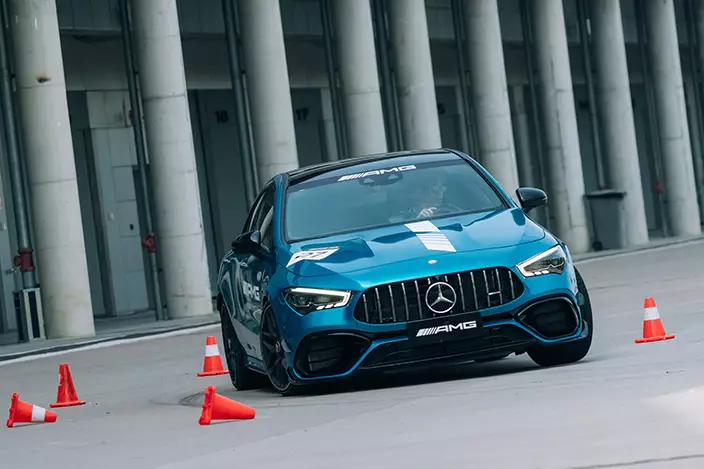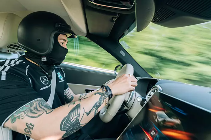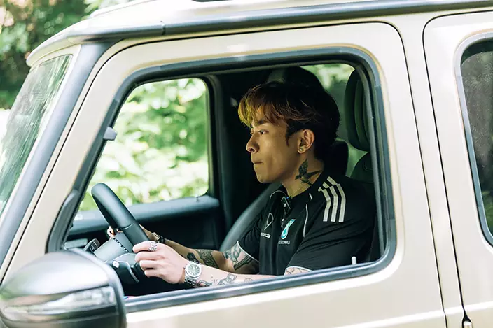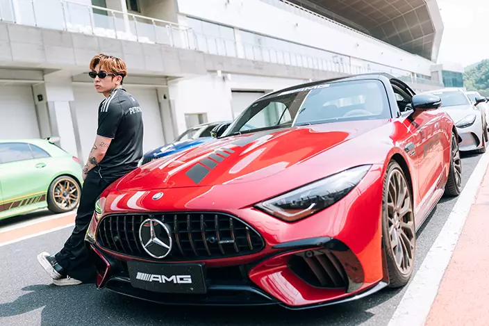 完成越野體驗後,Tyson轉戰浙江國際賽車場,駕駛AMG超級跑車馳騁賽道。「啲車快到好唔現實,最勁係快得嚟入彎唔驚,完全冇甩尾感!」他笑說,「平時鍾意揸跑車,但今次先真正感受到揸跑車係種樂趣。」談及與日常駕駛的差異,Tyson坦言:「平時多數開工收工或morning drive,路面平穩冇咁癮;今次可以安全做平時不敢做嘅嘢——踩爆油門、衝斜坡、轉彎唔驚甩尾,玩到夠盡,好爽!跑車同男人一樣,辣得嚟要有安全感,揸車 enjoy,乘客都enjoy。」