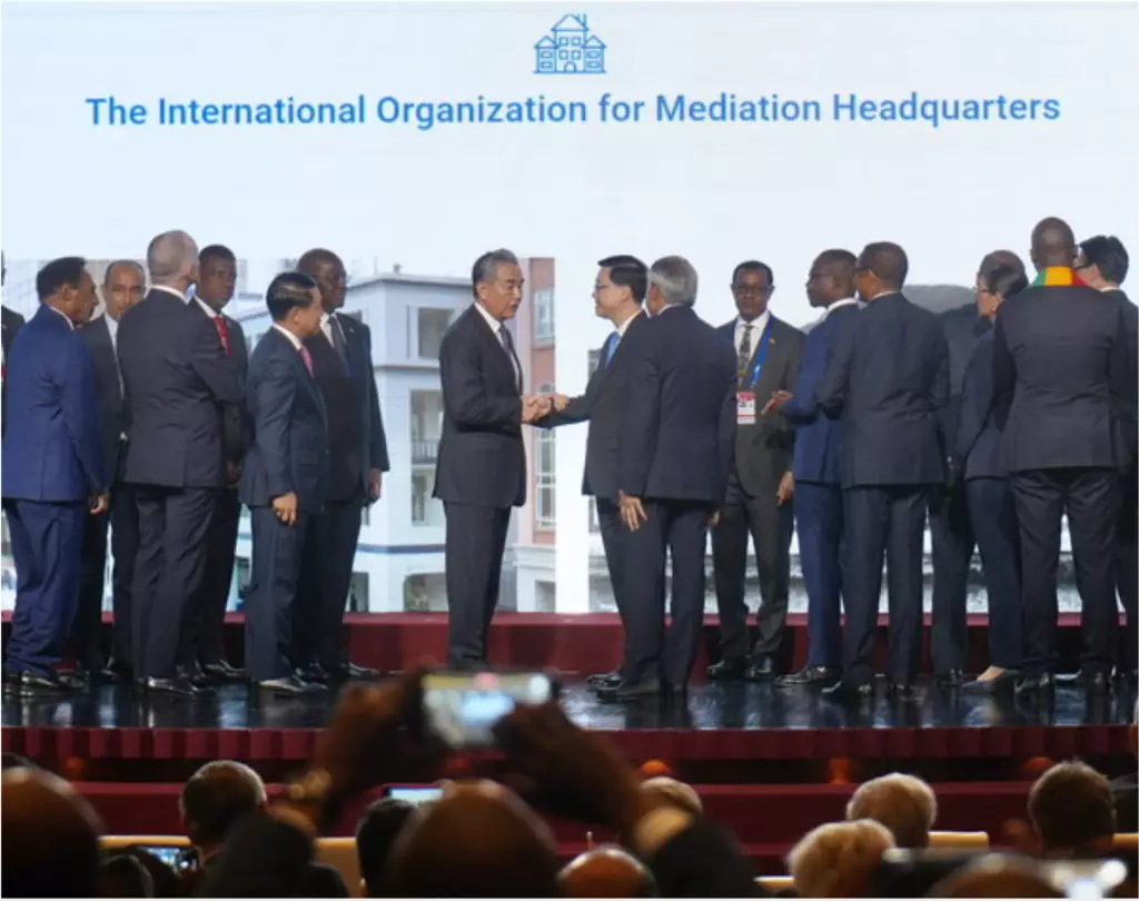 李家超衷心感謝中央大力支持國際調解院的總部落戶香港。他說,國際調解院是極高層次的國際組織,由在香港設立國際調解院籌備辦公室、完成《關於建立國際調解院的公約》(《公約》)談判、推動各方同意國際調解院總部在香港成立,以及在香港舉行《公約》簽署儀式,充分體現中央大力支持香港在「十四五」規劃下建設成為亞太區國際法律及解決爭議服務中心。