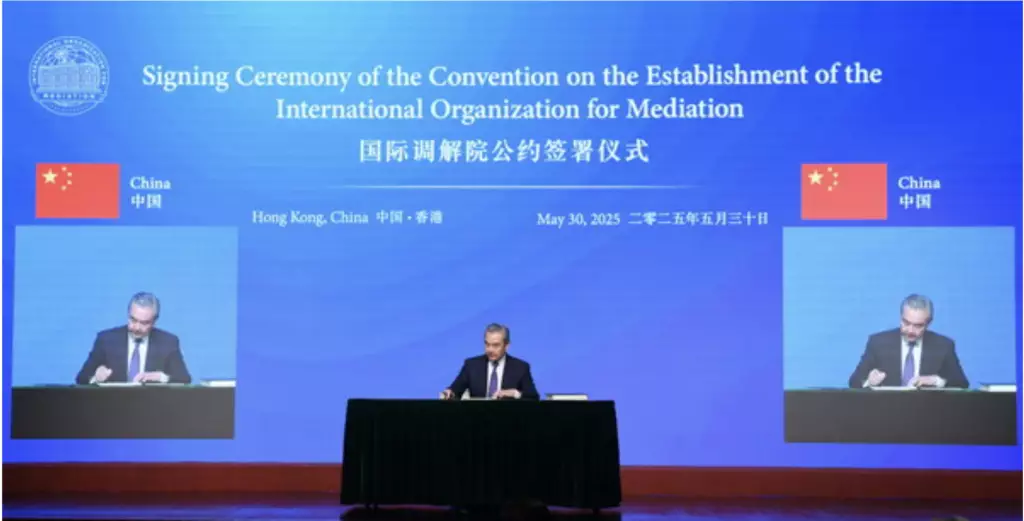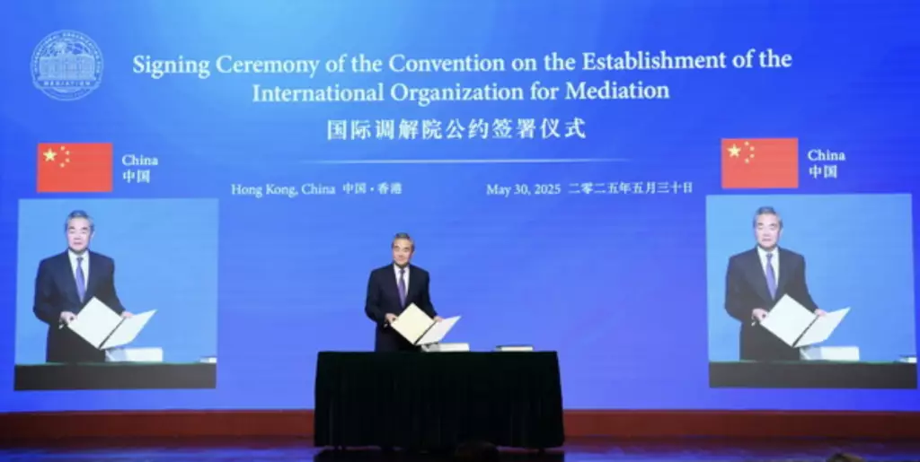 中共中央政治局委員、外交部長王毅來港出席國際調解院公約簽署儀式。外交部圖片
