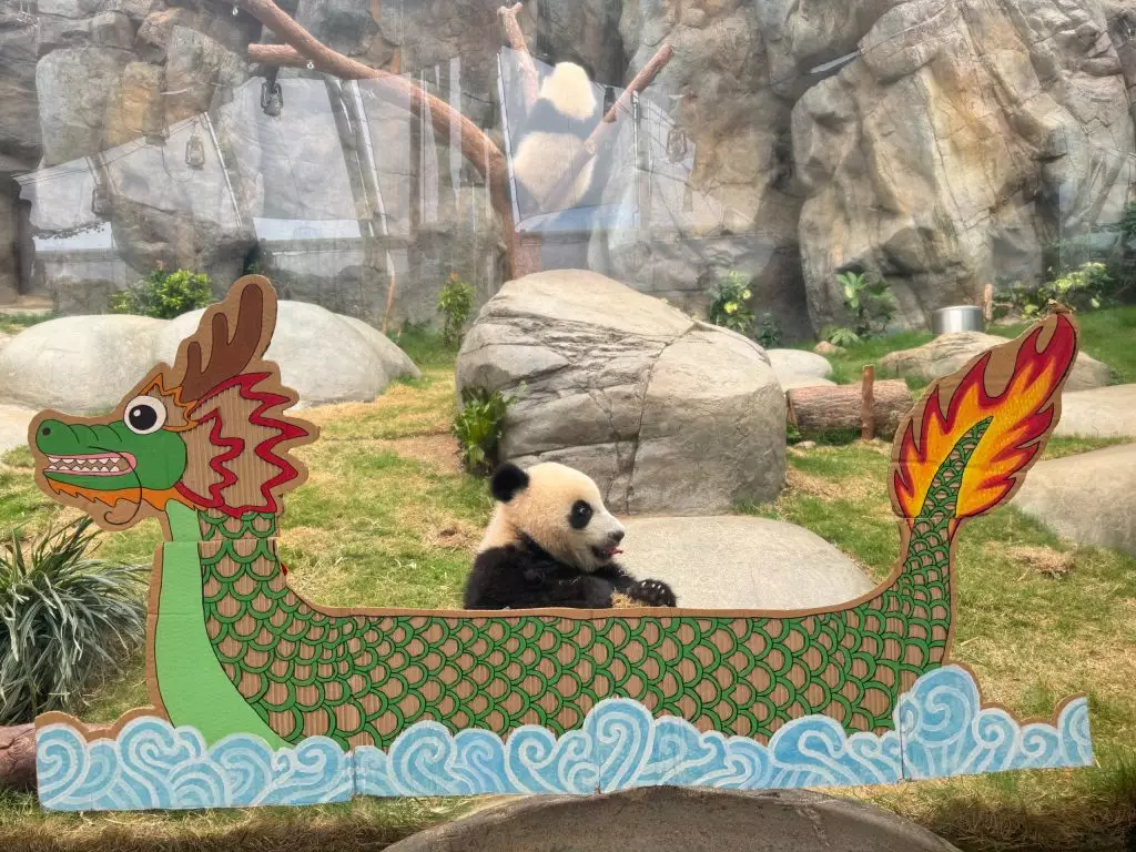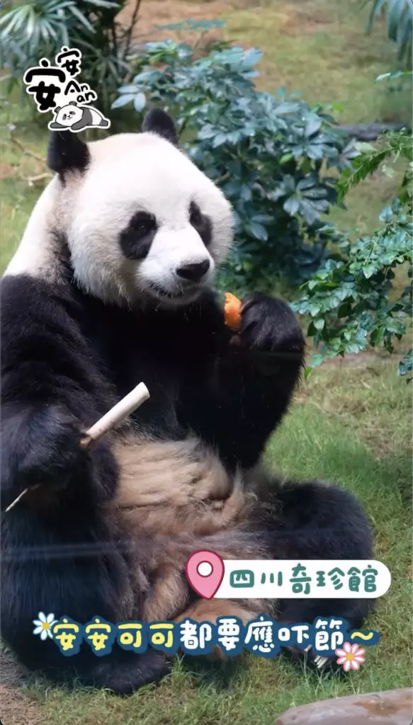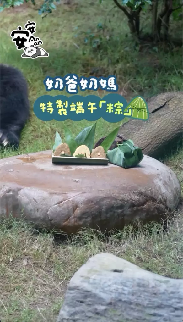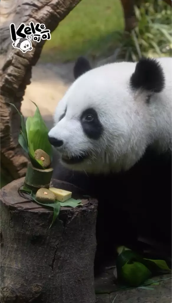 而除了家姐細佬有「爬」龍舟應節,大熊貓「安安」同「可可」亦有應節食物,就係食住奶爸奶媽特製的熊貓糭祝大家端午節快樂。