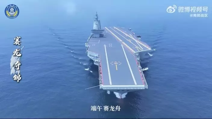 端午節(5月31日)上午,解放軍南部戰區發布視頻《深藍競渡!看子弟兵硬核「賽龍舟」》,中國第三艘航母「福建艦」在影片中亮相,引發網友熱烈迴響,彈幕中出現「太帥了」、「誰說龍舟用槳划?」等一句句精彩留言。