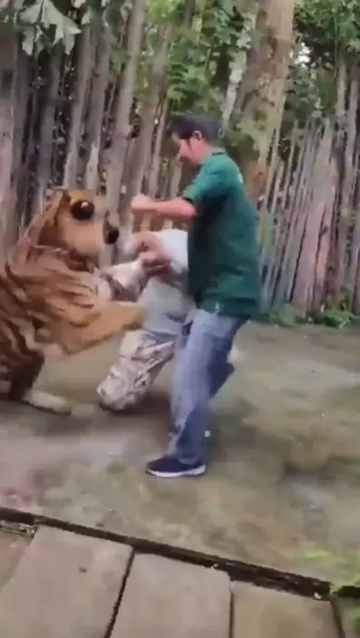 然而,老虎突然情緒失控,轉身撲向遊客,還揮爪攻擊,遊客發出尖叫聲,現場驚險萬分。片段公開後,有關遊客傷勢的留言稱:「是的,看起來只是輕傷」。