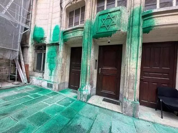 法國首都巴黎的5個猶太機構被人噴綠色漆油,當局已展開調查。X圖片