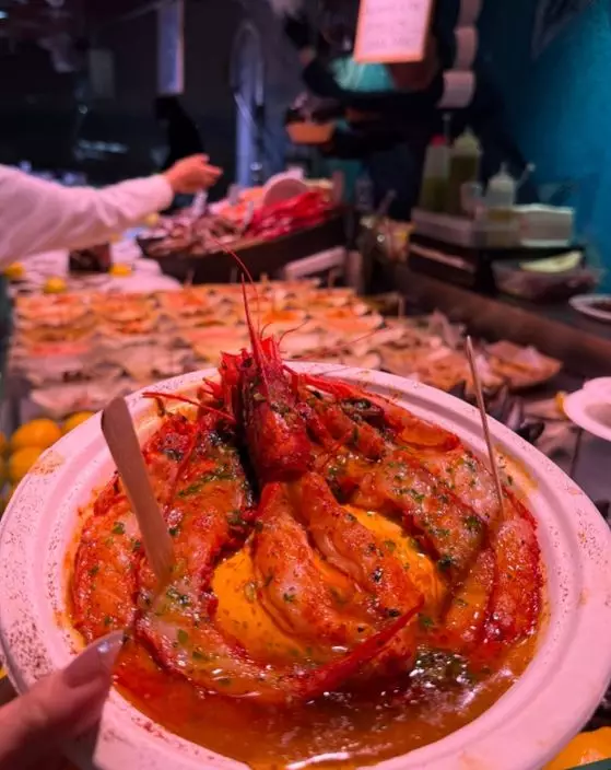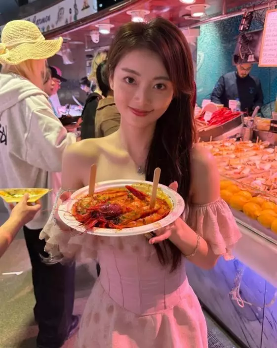 Erin分享在波蓋利亞市場的趣事,表示要「腰包掛胸前」嚴防盜賊,更興奮寫道:「這次吃上紅魔蝦了,幸福感拉滿1000%!」照片中她對着巨型海鮮大快朵頤,獲粉絲笑讚「食家本色」。