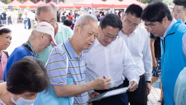 中聯辦主任周霽上任後首次落區,到九龍婦女聯會富昌服務中心、青衣長亨邨社區會堂調研。