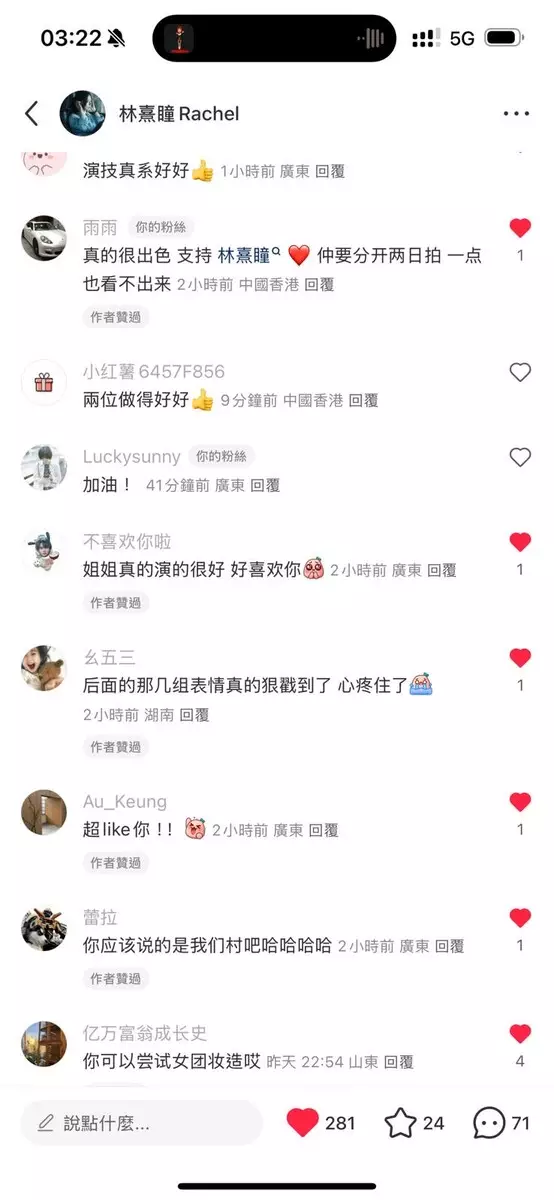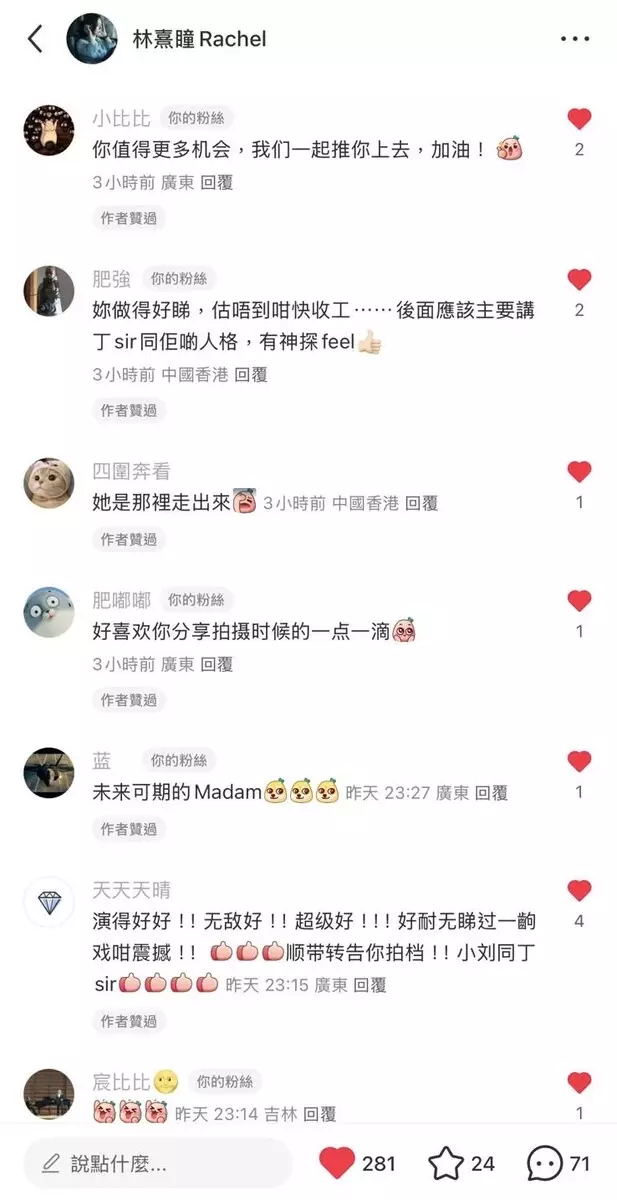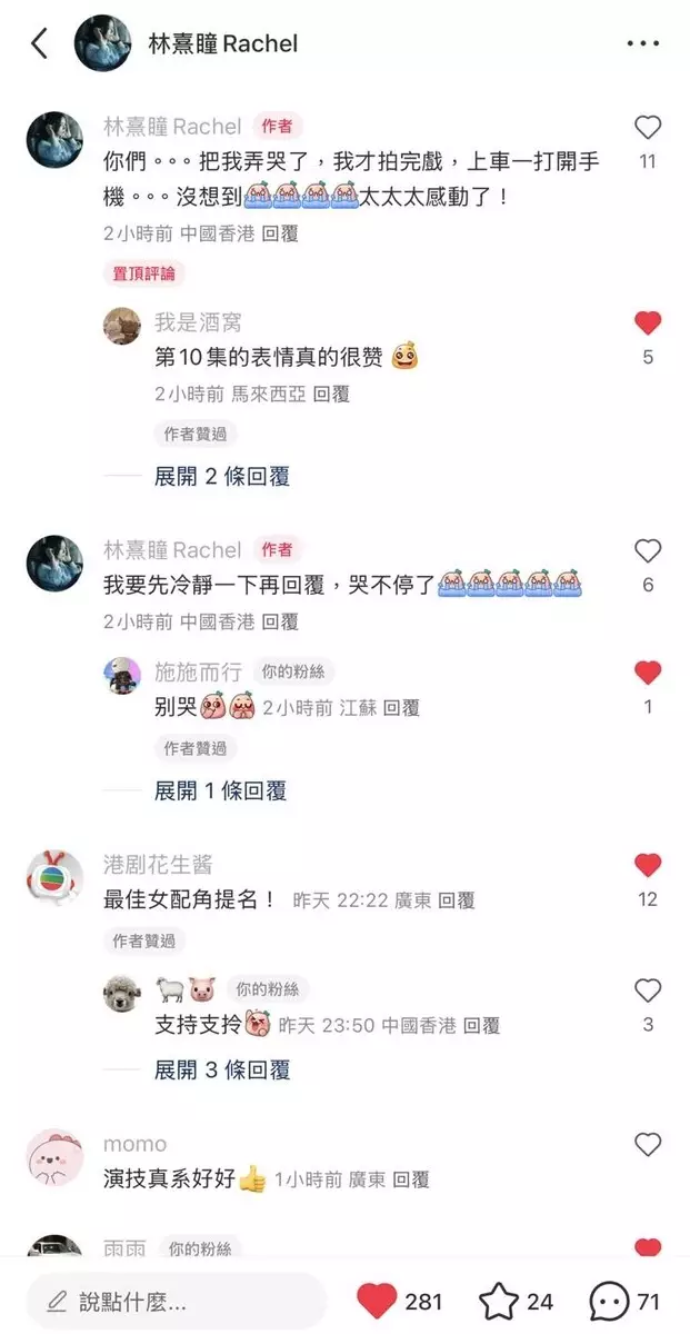 近日在深圳開工的林熹瞳,昨晚拍完戲,打開手機看見網民大堆留言力撐,被感動得連哭半小時,觀乎她每次有劇出街,都會有不少迴響,觀眾網民都力讚,但始終跟獎項無緣,甚至連提名都沒有,現在成功變親生女,希望她努力會得到回報。