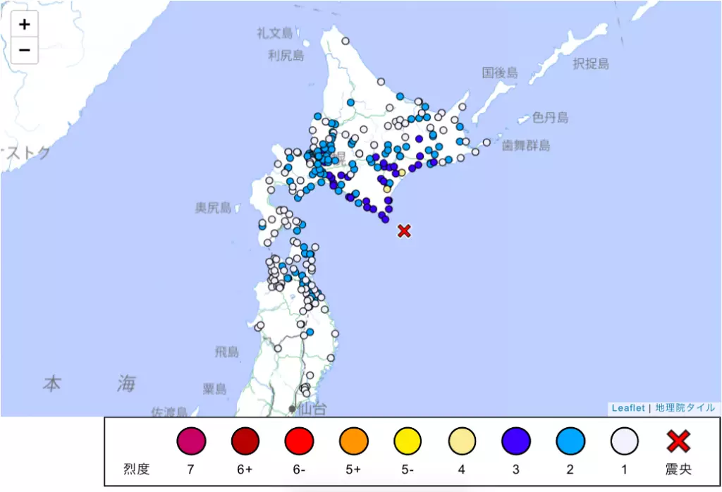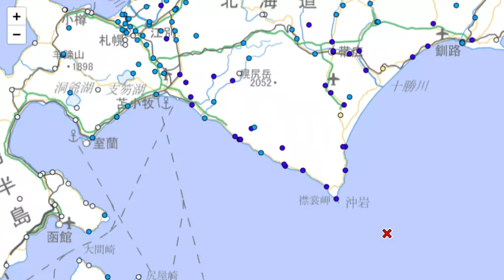 日本氣象廳表示,北海道東南部十勝近海凌晨發生6.3級地震,暫時無人員傷亡報告。