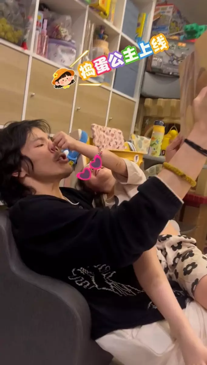 向佐在微博曬出陪女兒讀故事書的溫馨影片,只見向芷像隻小麻雀般在爸爸身上蹦跳,萌手不斷搞怪逗得向佐哈哈大笑。原本全程用卡通貼圖遮臉的特效,卻因小公主動作太大「穿幫」,短短3秒露出真容——水汪汪大眼、精緻瓜子臉根本是郭碧婷的迷你版!網民瘋狂重播片段:「這根本是碧婷小時候吧!」、「美到像AI生成的小孩!」