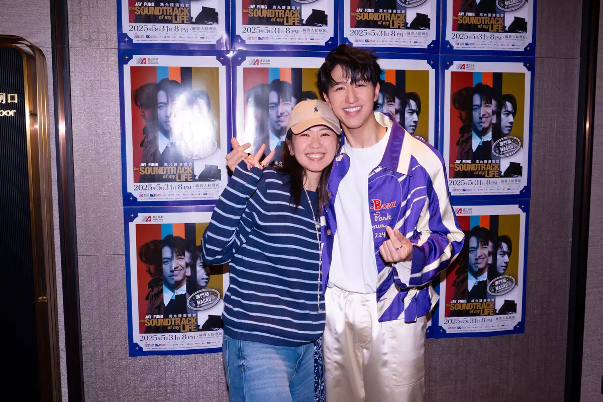 「唱作王子」馮允謙(Jay)首度衝出香港開騷,上週六(5月31日)於澳門倫敦人綜藝館舉行《the SOUNDTRACK of my LIFE 馮允謙演唱會澳門站》,全場爆滿。Jay獲媽媽、孖生細佬Tim及圈中好友「頭號追風」劉沛蘅(Hillary)、黃正宜(阿正)、陳考威和未婚妻陳穎欣(Yanny)等前來澳門捧場,非常熱鬧。