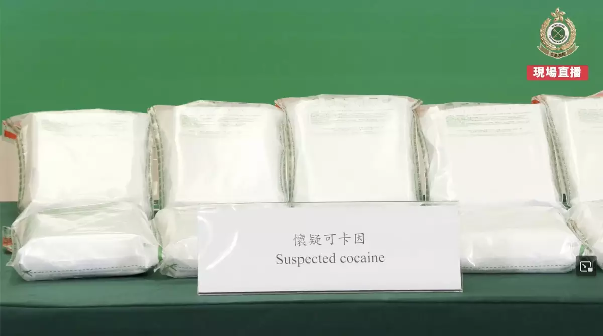 海關機場破販毒案檢18公斤可卡因拘2人。海關直播截圖