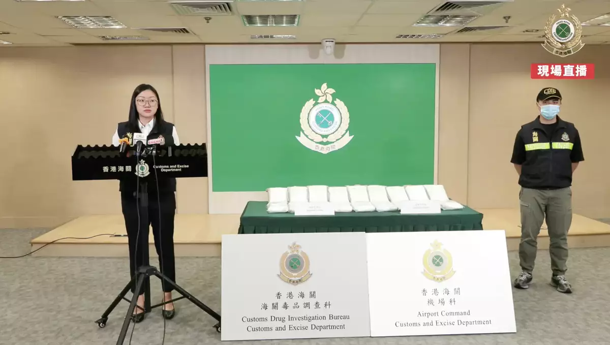海關偵破一宗航空旅客販毒案件,檢獲18公斤可卡因,市值1,500萬元,拘捕1男1女,其中女性被捕者只得16歲。