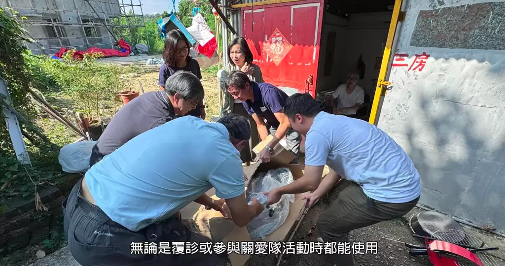 此外,一直住在打鼓嶺鐵皮屋的黃生黃太,每逢打風落雨屋企便會水浸 。關愛隊知悉後,協助黃生黃太搬遷到區內過渡性房屋,還送了一部輪椅給行動不便的黃生,讓他們可以重獲便利生活。