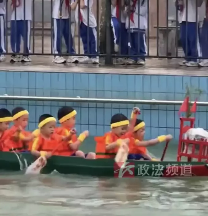 綜合內媒報導,廣東汕頭澄海區溪南西社幼稚園近期舉辦了一場「迷你龍舟賽」,響應端午節傳統賽龍舟習俗。園長林女士介紹,這次龍舟賽共有36名幼童參與,平均年齡約5歲,當中32名為正式隊員,4名為後備,每8人組成一隊,分組角逐。