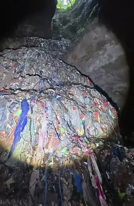 綜合內媒報導,湖南張家界一處天然溶洞近期被多名居民揭發洞內堆積大量垃圾,高度直逼7層樓,嚴重污染環境。據悉,涉事溶洞位於通津鋪鎮長峪鋪村楊家坡,屬典型喀斯特地貌,垂直深度約150米。洞內長期存有陳年垃圾及污水,近來因暴雨影響導致污水上漲外溢。