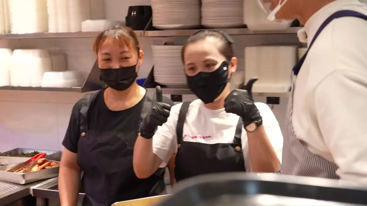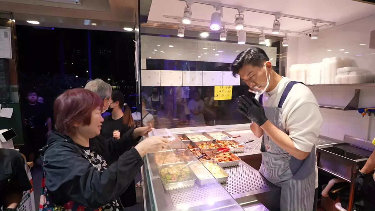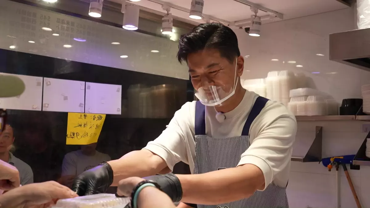 正式開工後的諾懿,除以「口花」服務態度取勝,還相當闊綽,他的「黎諾懿式雙餸飯」贈送飲品之餘、連餸的份量也比平時多。諾懿還展現了「一心多用」技能,快速完成了十一盒外賣,又貼心地送上簽名!而出名入得廚房的諾懿,席間還親自炮製椒鹽鮮魷和一字骨,員工吃罷後都豎起手指公大讚好味。