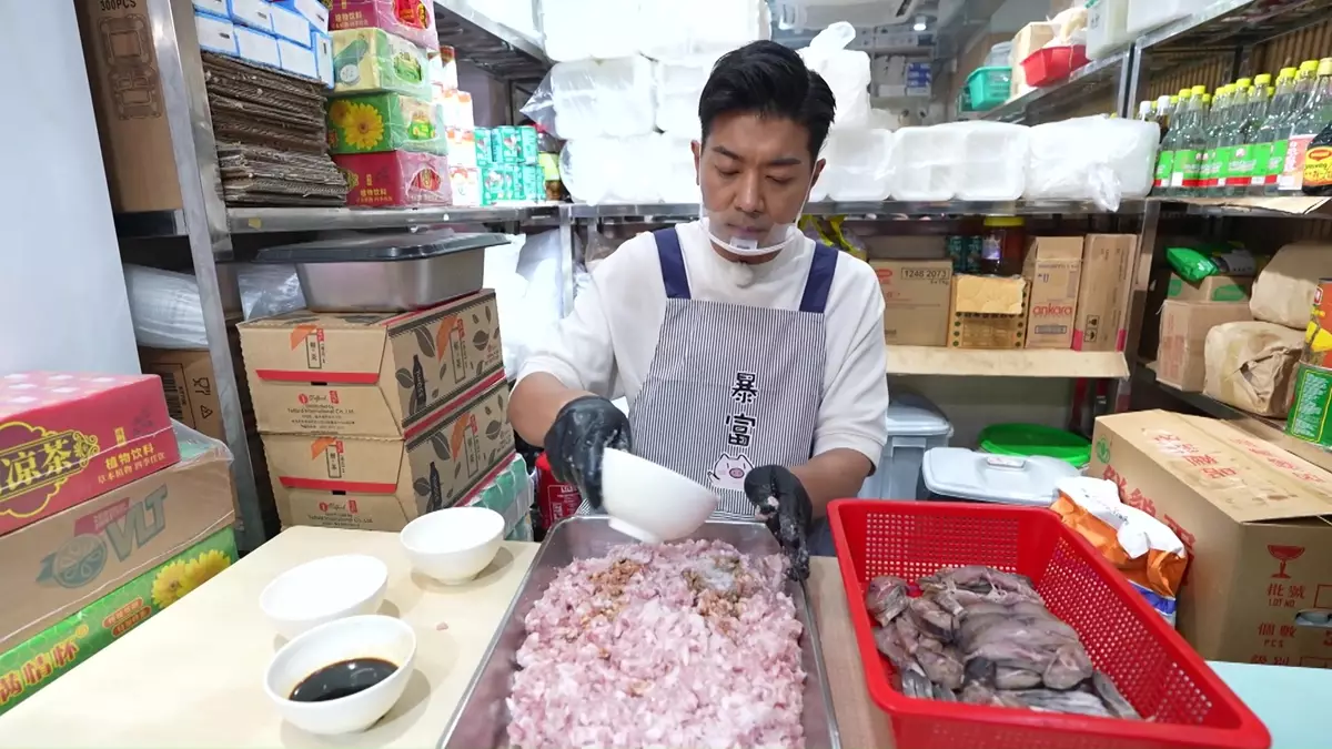 精打細算的他買蝦時,使出可憐攻勢,請求師傅幫他「挑蝦腸」