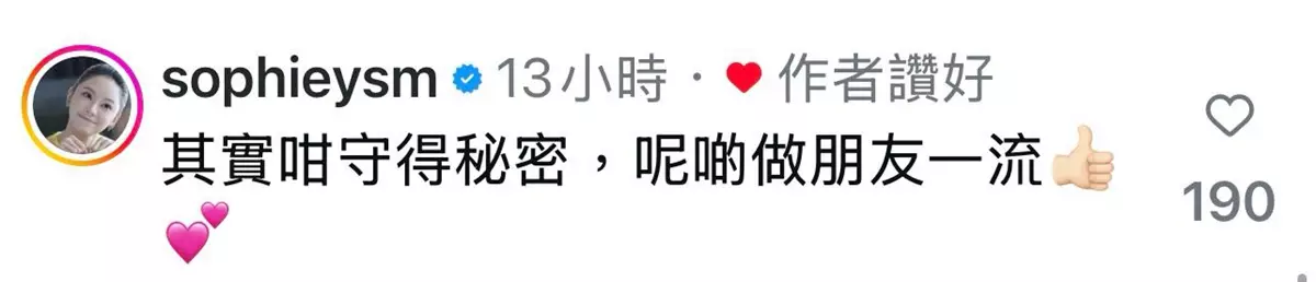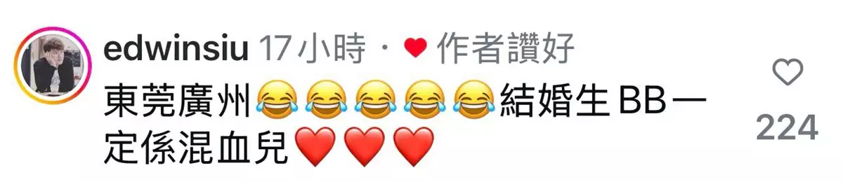 至於阿Bob IG,亦吸引了大批藝人好友湧入留言,就連蔡卓妍及蔣家旻亦有留意節目,阿SA:「笑死我」、蔣家旻:「尋晚笑到我哩」、蕭正楠:「東莞廣州,結婚生BB一定係混血兒」;就連節目中其中兩位女神,亦忍不住留言湊熱鬧,並似乎對維燁情有獨鍾,葉蒨文:「其實咁守得秘密,呢啲做朋友一流」、梁敏巧:「可唔可以叫佢返嚟,我想同佢瘋狂傾偈」,當中梁敏巧的留言,已吸獲510 Likes,維燁受歡迎程度可見一班。