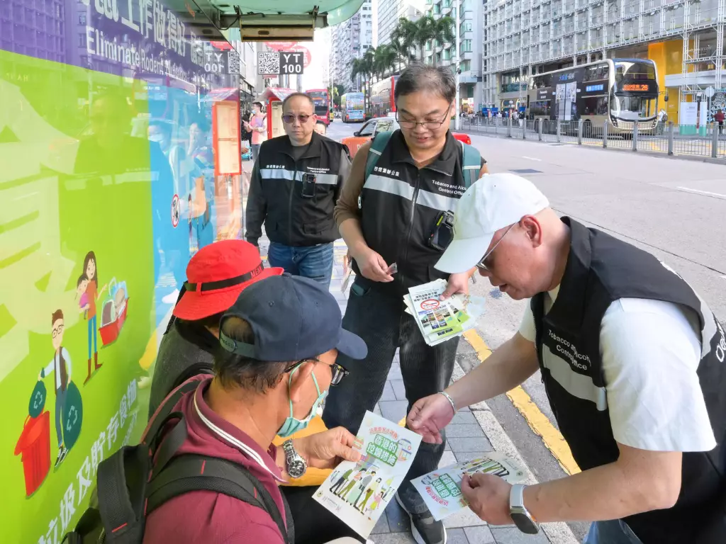 控煙酒辦向市民派發有關新例的宣傳單張。政府新聞處圖片