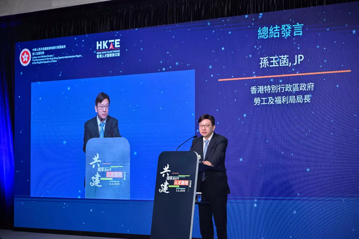勞工及福利局局長孫玉菡在交流會總結發言說,香港擁有多元優勢吸引國際人才,配合國家不同區域共同協作,環環相扣下加速建設國家高水平人才高地,期望交流會及明年初舉辦的第二屆「香港.全球人才高峰會」能夠匯聚各地引才、留才、育才和用才的寶貴經驗。