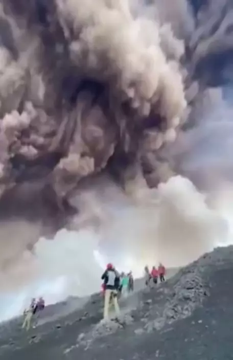 近日意大利火山突猛烈噴發,現場有遊客竟不顧生命危險駐足拍片後才離開,令人膽戰心驚。