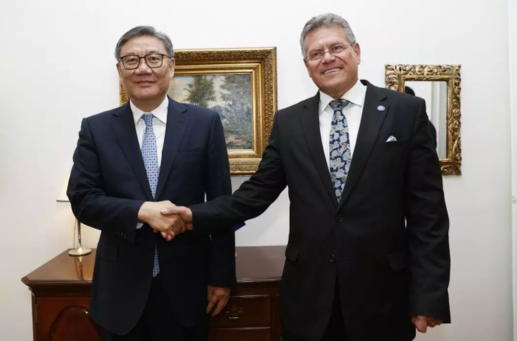 王文濤與歐盟貿易專員謝夫喬維奇圍繞中歐經貿合作緊迫而重要的議題。商務部圖片