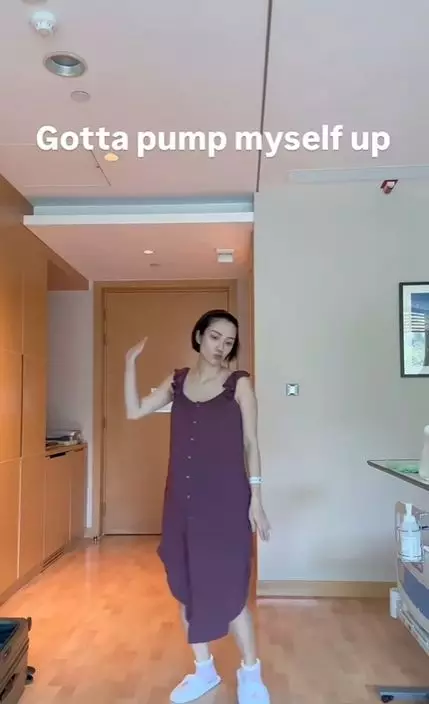 王君馨(Grace)在IG分享臨盆前挺巨肚勁舞的影片。