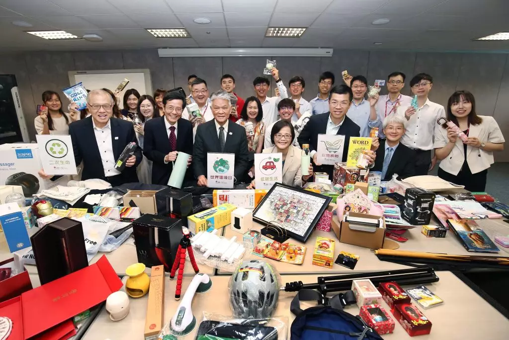 港燈董事總經理鄭祖瀛(右三)與可持續發展管理委員會的成員率先捐出「寶物」,放到「以物易物」市集上與同事共享,鼓勵大家減少浪費,積極實踐低碳生活。