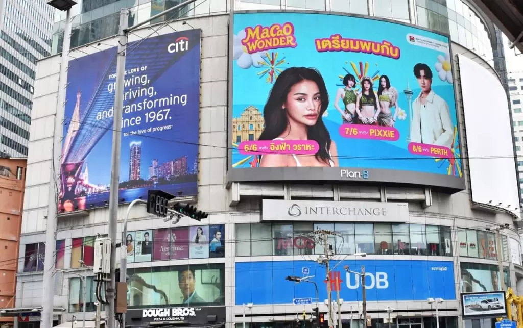 「感受澳門」大型路展在泰國曼谷的戶外廣告。澳門政府新聞局圖片