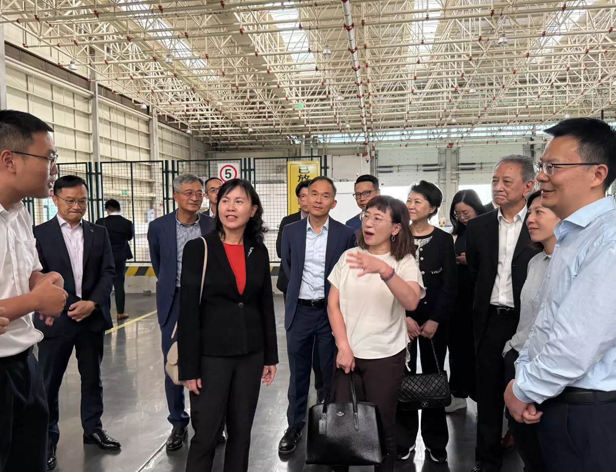 陳美寶(前排左一)參觀成都天府國際機場國際貨運區快件中心。 政府新聞處圖片