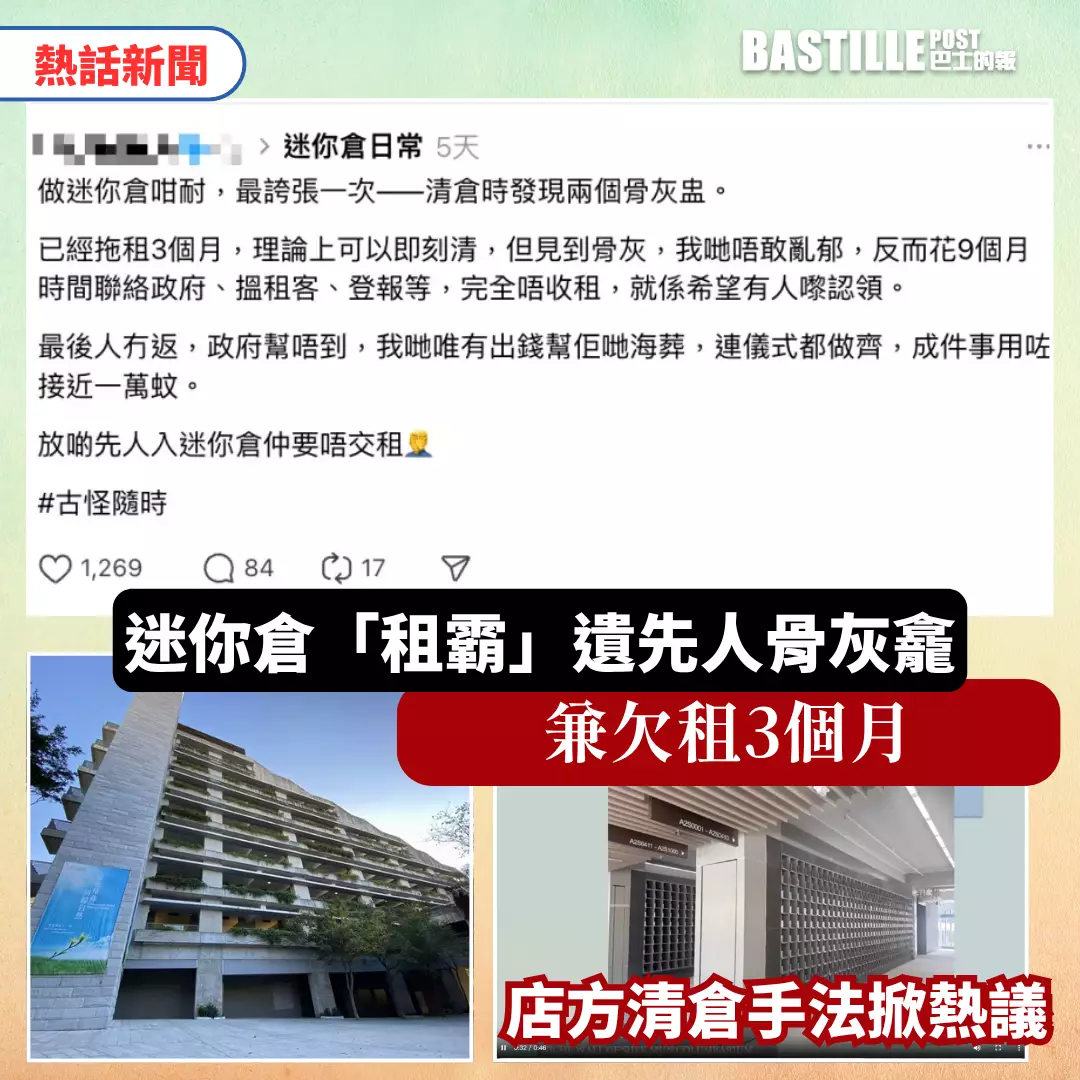 香港大部分家庭居住環境都比較狹窄,於是迷你倉服務應運而生。不過近日有迷你倉老闆在網上撰文,指早前遇到租客拖欠租金3個月,無奈清倉時意外發現倉內竟然有兩個裝有骨灰的骨灰盅,情況相當棘手。