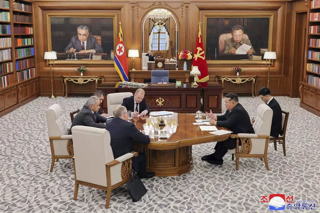 北韓朝中社報道,勞動黨總書記、國務委員長金正恩會見到訪的俄羅斯聯邦安全會議秘書紹伊古。