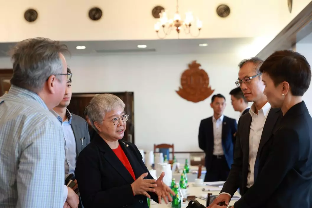 網絡安全及科技罪案調查科總警司林焯豪(左二)與各小組成員就低空經濟議題交換意見。]