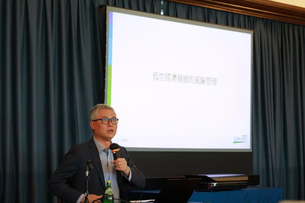 鄭松岩分享,作為低空經濟沙盒的試點項目場地,數碼港現時已啟動五個項目,涵蓋跨海運送物資、環境及建築物外牆檢測、大型活動線上直播、無人機表演等,為部門與企業提供技術驗證平台。小組成員認為相關風險需從技術、外部環境及操作制度三方面管理,並深入討論無人機實名登記與追蹤制度、統一檢測標準、演算法審核機制及分級再認證制度,以加強風險控制與制度支撐,達致嚴格安全水平。