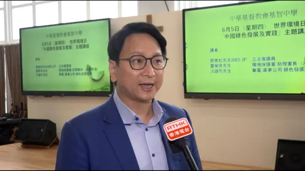 今日是「聯合國世界環境日」,環保署助理署長雷學良、工聯會立法會議員鄧家彪及央企中國華電的代表,到觀塘的中華基督教會基智中學出席講座,主題為「中國綠色發展及實踐」,中四及中五級大約200多名學生參與。