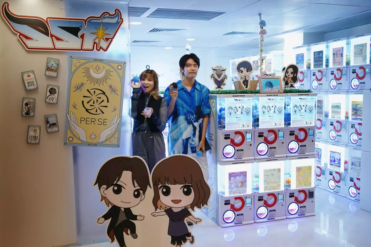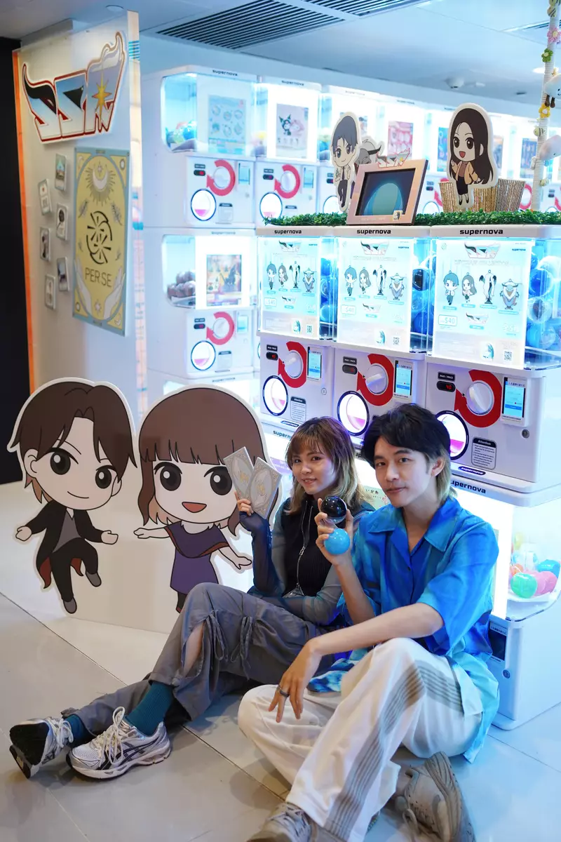 扭蛋店設有期間限定的《SSR》主題裝飾,PER SE日前到分店打卡快閃引來近百粉絲到場支持,二人輪流為在場的樂迷「加持」扭蛋,不過反而「幫倒忙」,Stephen說:「最深刻係我哋幫其中一個Fans,連續扭到三個重複的角色,都有啲唔好意思,不過好代表到今次《SSR》—— 好多嘢我哋都控制唔到㗎。」