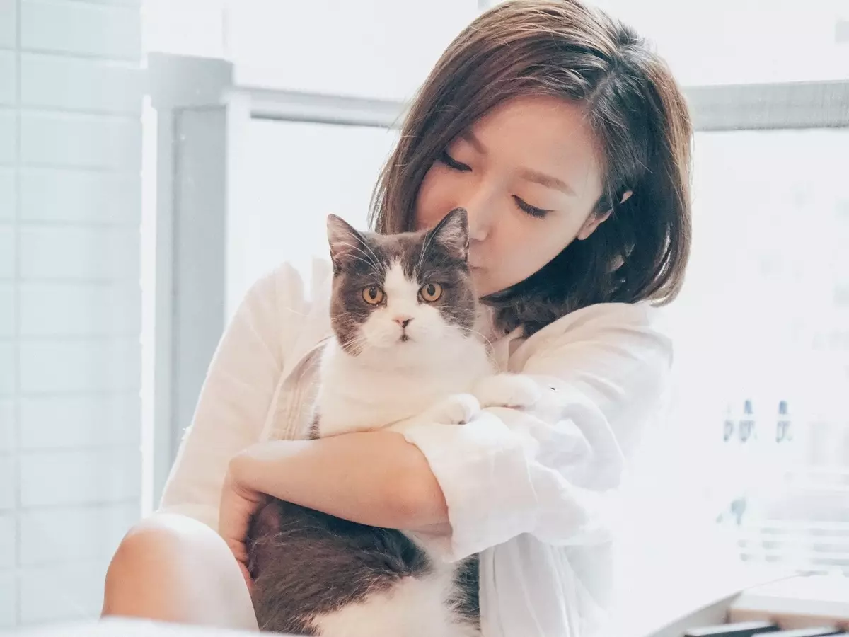Mischa與愛貓Lara合照。