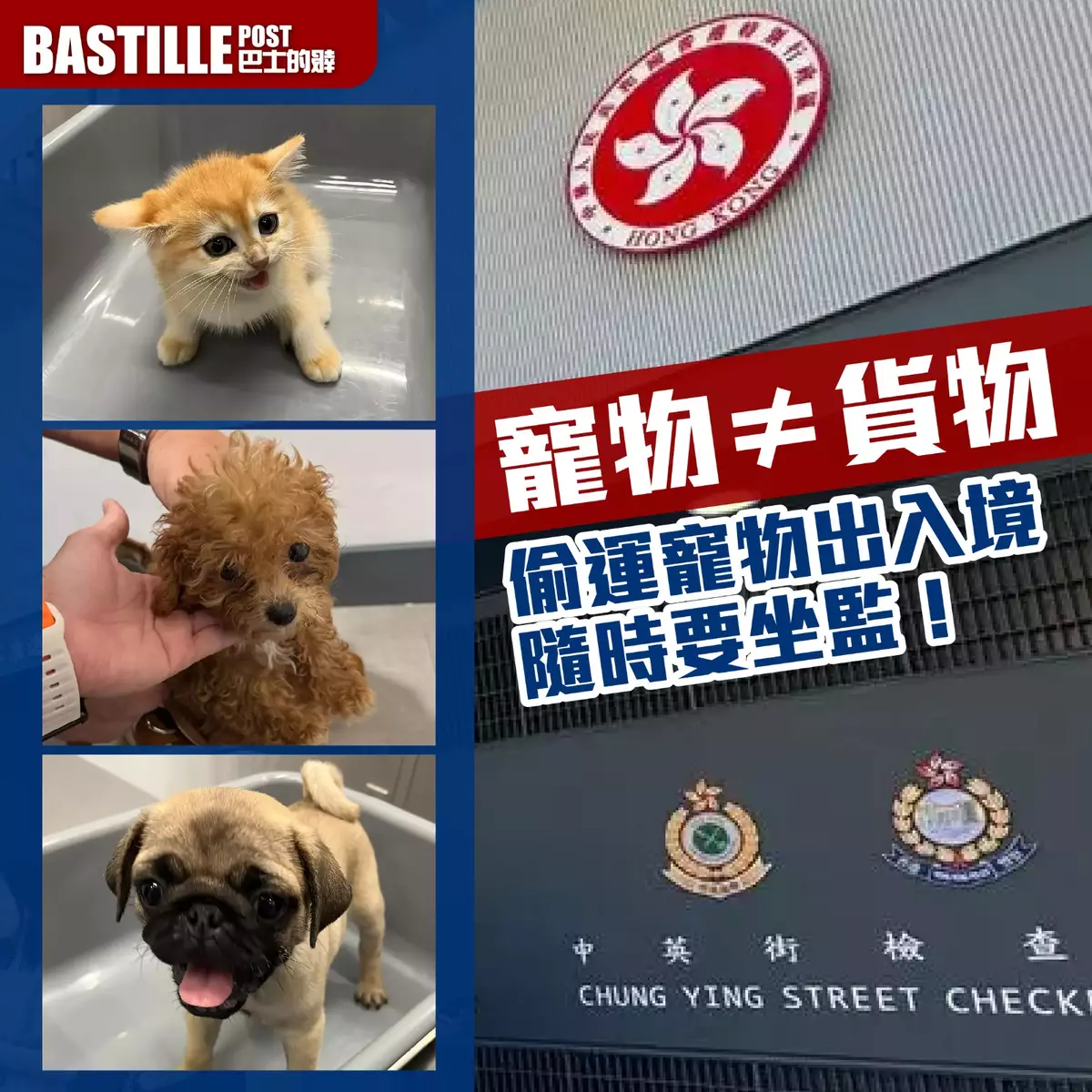 海關在兩名從中英街入境女子的手推車上,發現3隻懷疑非法進口動物,二人被捕。