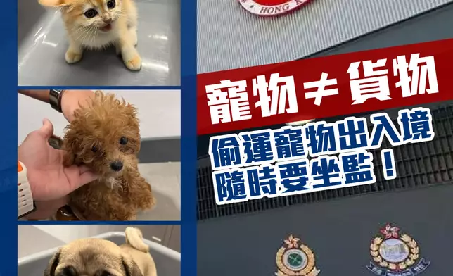 海關說,自2023年11月起,與深圳海關緝私局展開代號「寵營」的聯合執法行動,打擊走私動物罪行。25年5月下旬,香港海關展開第四階段行動,4日偵破這兩宗涉嫌非法進口動物的案件,共檢獲3隻懷疑非法進口動物,估計市值約2萬元。