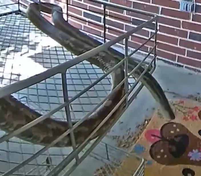 影片可見,一條巨大鼠蛇(Rat snake)在安娜家門外徘徊,時而攀上大門,時而在門前欄桿上游移。她表示,「我沒想到竟然會看到大蛇,這是我從未見過的景象,而我老公覺得很酷,所以我把影片分享在網上」。