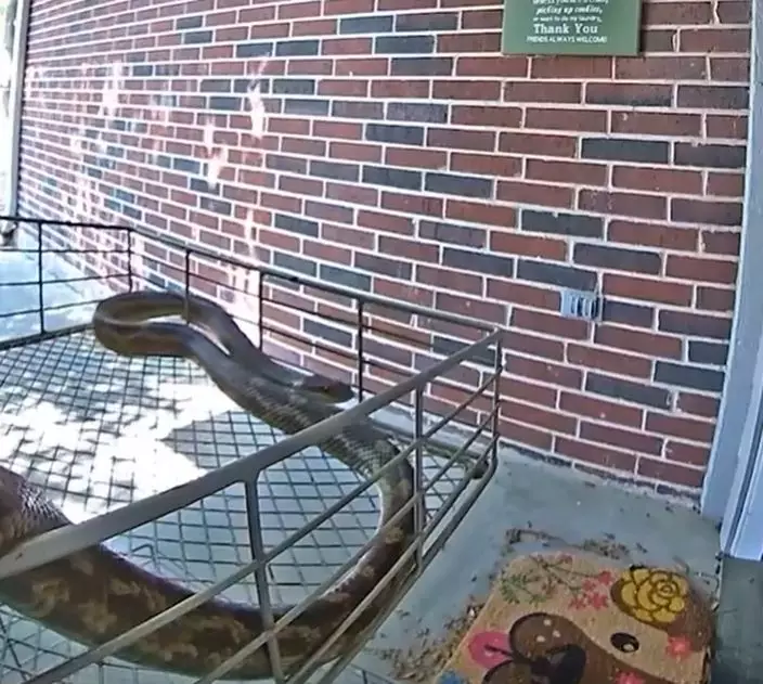 美國女收到門鈴監控系統通知有「訪客」,結果驚見2米長巨蛇在門口四處亂爬嚇壞。