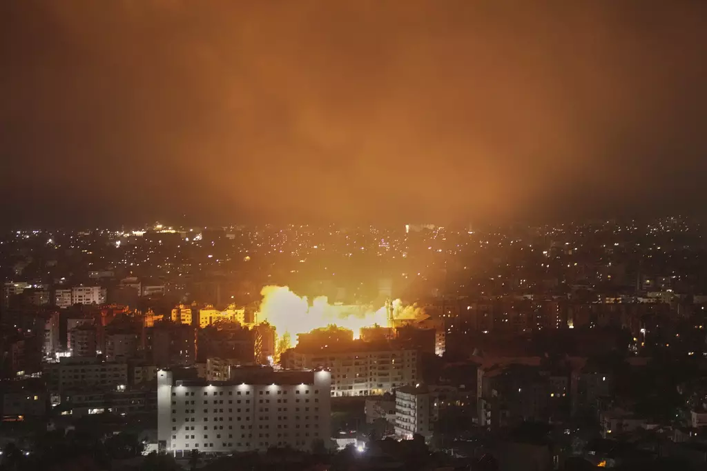 以色列軍方對黎巴嫩首都貝魯特南郊發動無人機襲擊,轟炸多座建築物。AP圖片