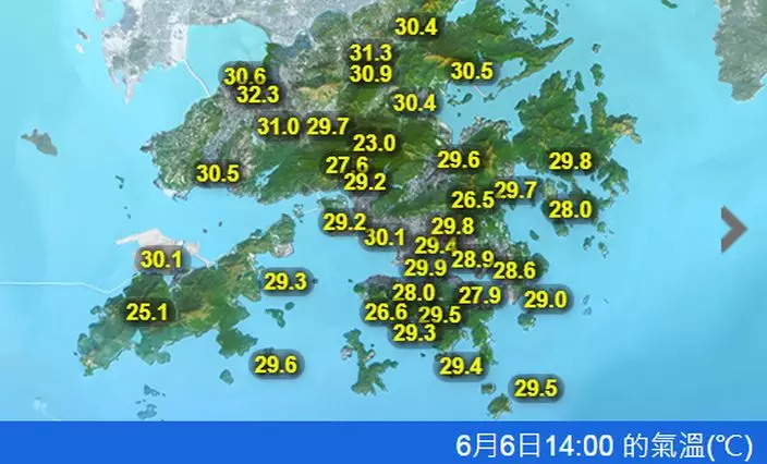 天文台展望未來數日大致天晴,漸轉酷熱。下週後期有幾陣驟雨。