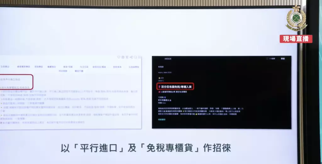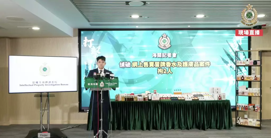 海關版權及商標調查科調查主任廖聞晉表示,早前接獲市民及商標持有人的舉報,指有人利用網上平台售賣冒牌護膚品。海關人員隨即透過大數據系統進行風險評估和分析,並透過網上巡查再發現另一個網上平台帳戶亦有售賣懷疑冒牌香水和護膚品,其後展開調查。