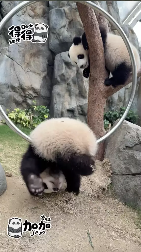 大熊貓家姐「加加」同細佬「得得」已經15個月大。香港大熊貓官方專頁ig截圖