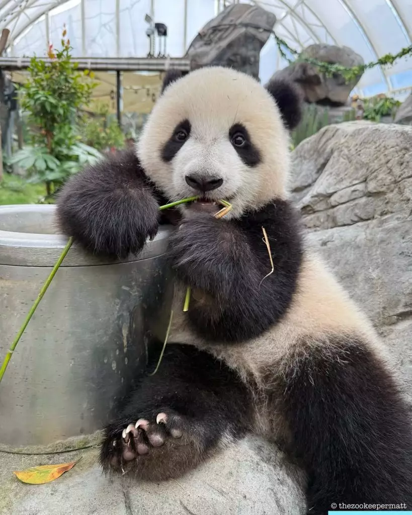 大熊貓家姐細佬開始食窩窩頭了。香港大熊貓官方專頁ig截圖