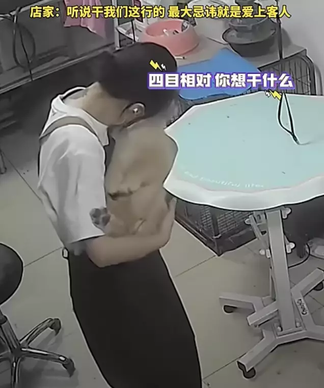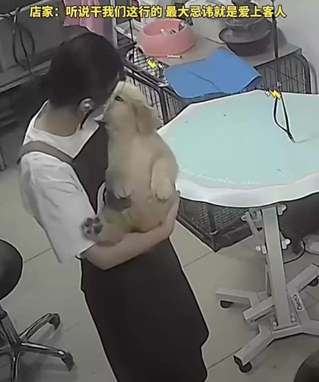 有些職業一不小心就會跟客人擦出火花。內地的寵物店內上演了一場美容師愛上小金毛,緊抱狂親的刺激場面!