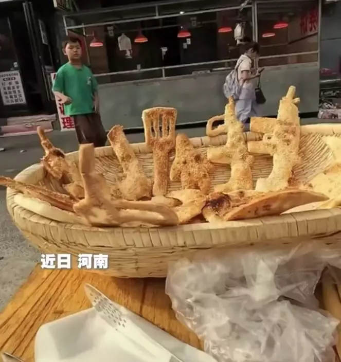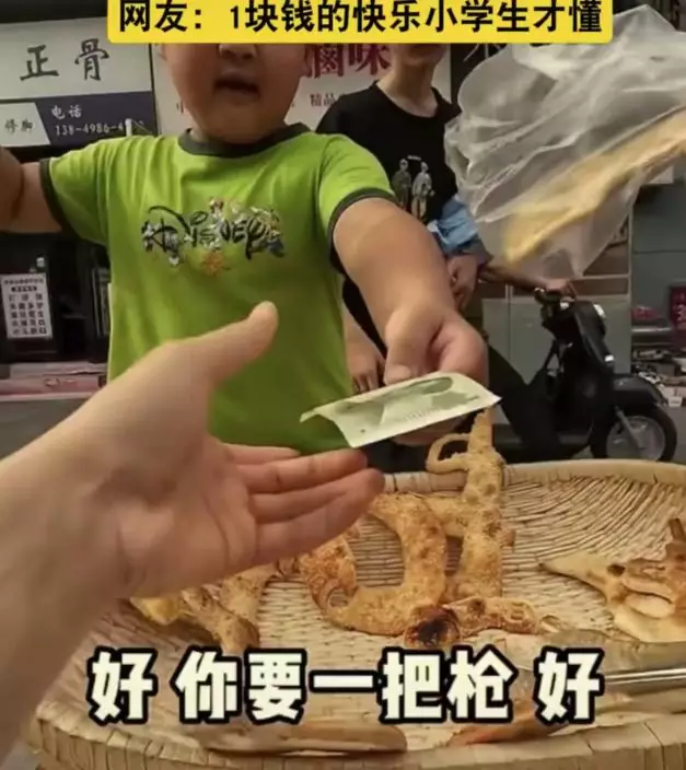 河南攤主售「槍械」造型燒餅,因玩樂果腹兼具深受小學生喜愛爭相購買,生意異常火爆。