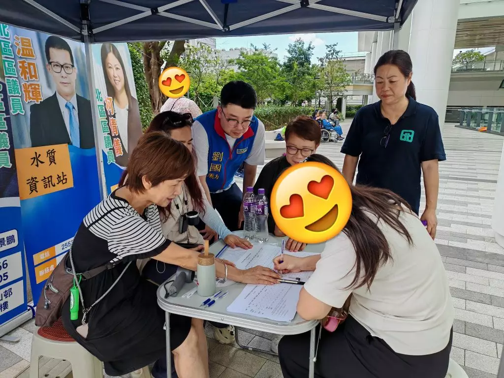 粉嶺皇后山邨及山麗苑食水有黑色沉積物事故,政府一連兩日設置街站。fb圖片