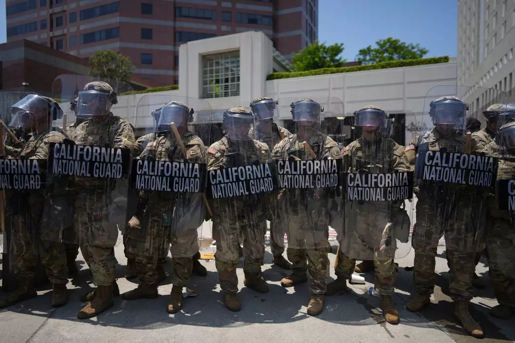 美國軍方表示,300名國民警衛隊隊員已被派往大洛杉磯地區三個不同地點,負責聯邦財產和人員的保安工作。法新社報道,一批戴上頭盔、身穿迷彩服、手持自動武器的國民警衛隊隊員,在市中心一處聯邦建築物外圍戒備。